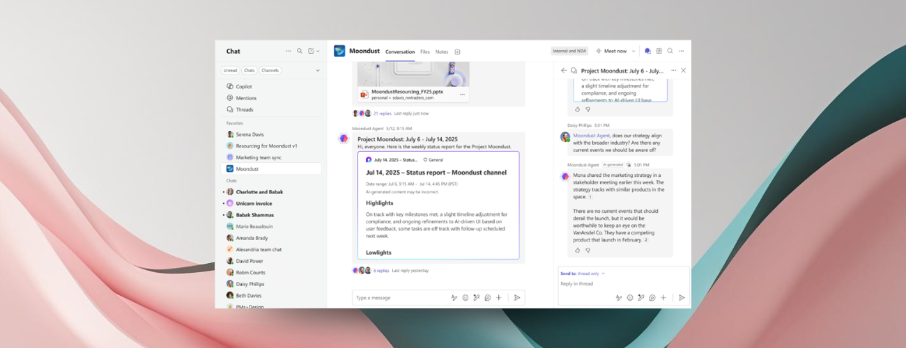 该AI助手的核心优势在于其深度集成能力。它能够基于会议记录、Planner任务列表以及Loop组件中的数据,自动生成结构清晰的项目报告,并实时回答团队成员提出的问题。无论是追踪待办事项、整理会议纪要,还是协助起草新的会议议程并安排时间,Channel Agent都能高效完成,显著减少人工操作负担。此外,它还能被邀请参与频道会议或群组聊天,进一步提升沟通与项目推进的流畅性。