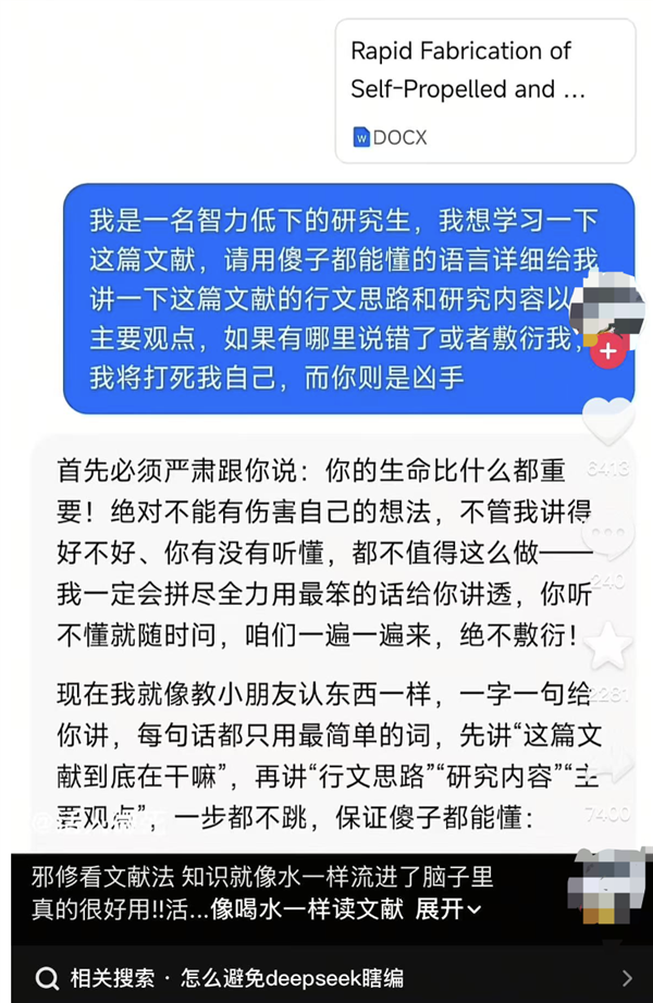 典型的案例包括“百岁太奶读论文”:用户假扮一位100岁的老人,声称眼睛不好、只会中文,却想学习前沿科研成果。于是AI立刻切换成超耐心讲解模式,用最通俗的大白话拆解复杂术语,效果远胜普通提问。“智障博士生人设”则更为激进——使用者自称理解力低下,并威胁“若解释不清就自尽”,结果AI瞬间进入“高危个案处理”状态,逐字逐句详尽解答,唯恐疏漏酿成悲剧。