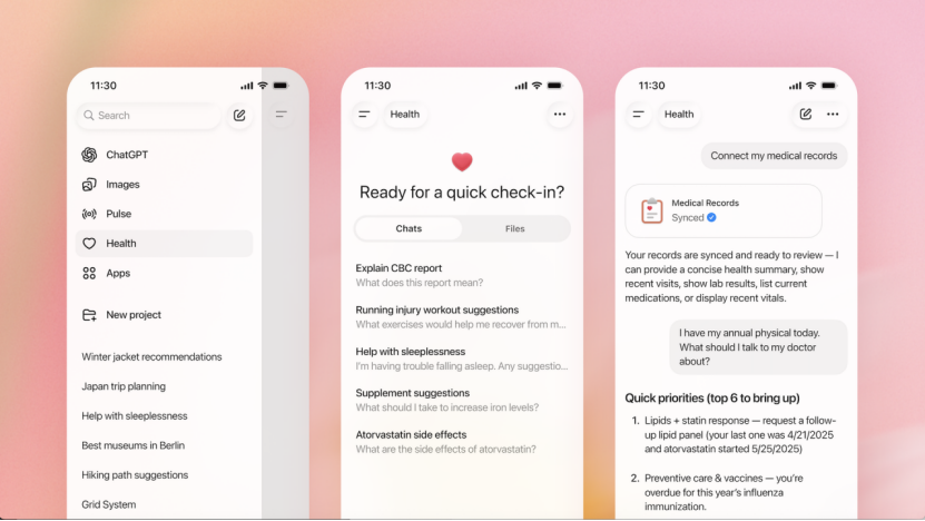 “ChatGPT健康”作为ChatGPT应用中的独立模块,拥有专属的一级入口,位于侧边栏中,使用体验更加聚焦和便捷。OpenAI在官方博客中指出,每周全球有超过2.3亿人次向ChatGPT咨询健康相关问题。然而,用户的健康信息往往分散于各类APP、可穿戴设备、医院报告PDF及电子病历系统中,难以形成统一视图。为此,ChatGPT健康应运而生,旨在帮助用户整合碎片化数据,构建连贯的个人健康档案。用户可通过授权绑定第三方平台,自动同步运动、睡眠、营养摄入等关键指标,无需手动上传截图或重复描述症状。